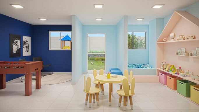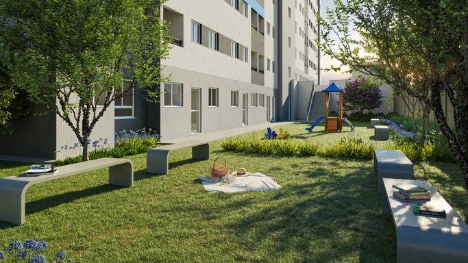 ✅ Lazer completo para facilitar seu dia: mini-mercado, lavanderia OMO, playground e muito mais.