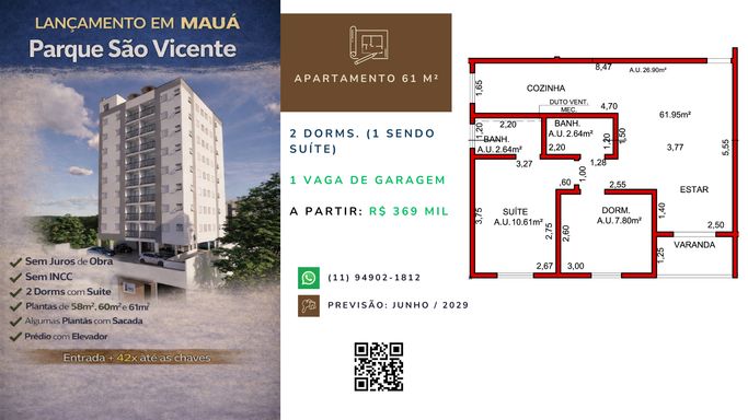 📲 Entre em contato agora e saiba mais sobre este lançamento no Parque São Vicente – Mauá.
